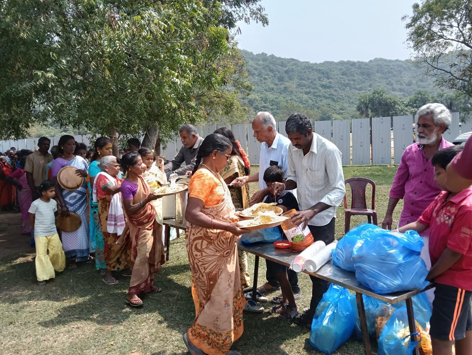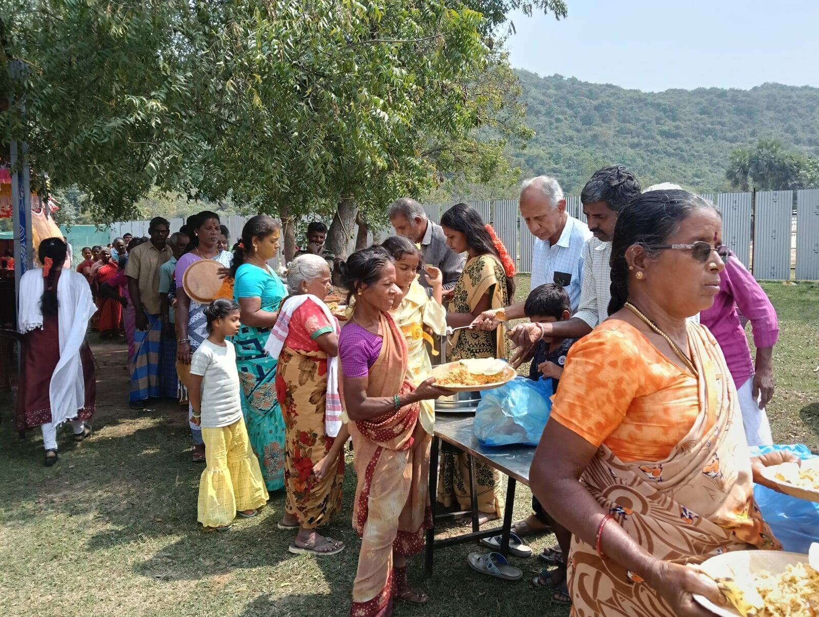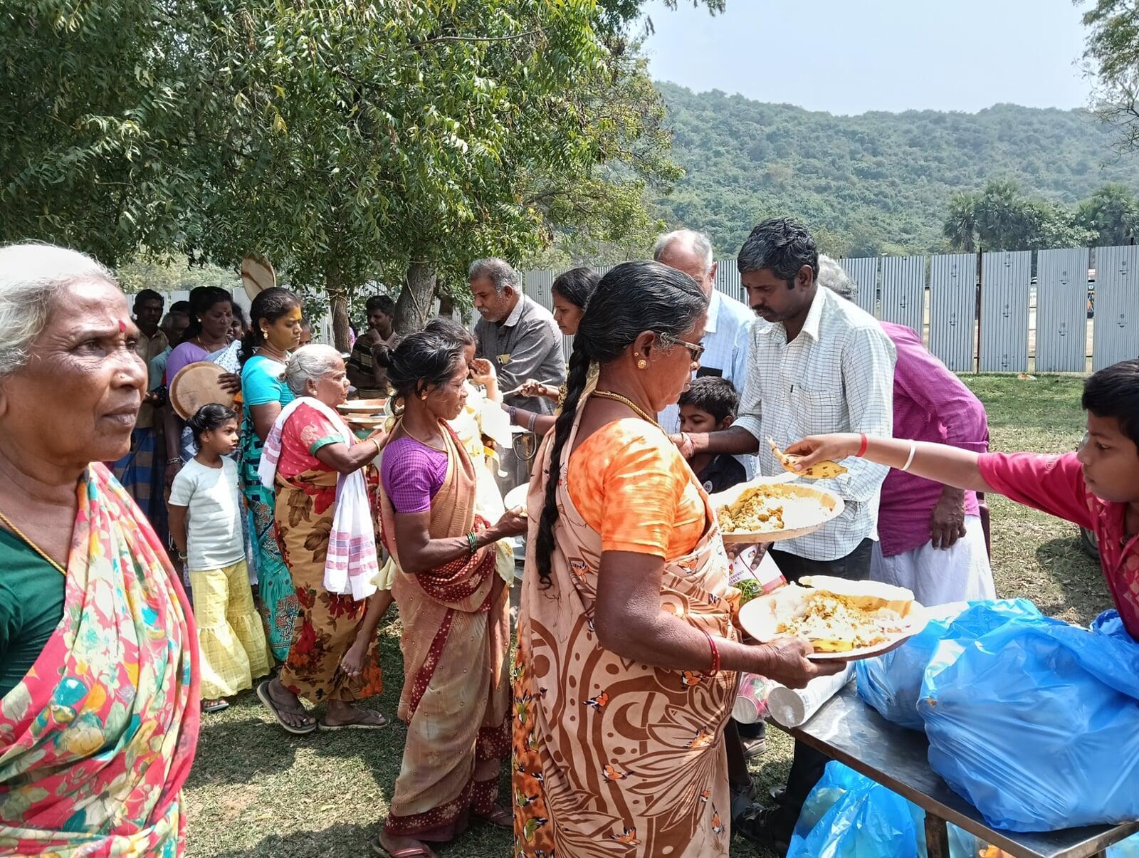 Following the distribution, noon prasad was served to 200 beneficiaries.
